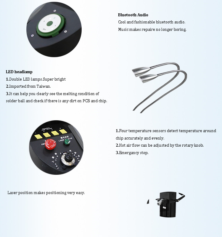 আমরা আরও ভাল পারফরম্যান্স সহ DH-B2 বিজিএ রিওয়ার্ক মেশিন সরবরাহ করি। এই মডেলের সবচেয়ে বড় বৈশিষ্ট্য হল এর অনন্য ব্লুটুথ